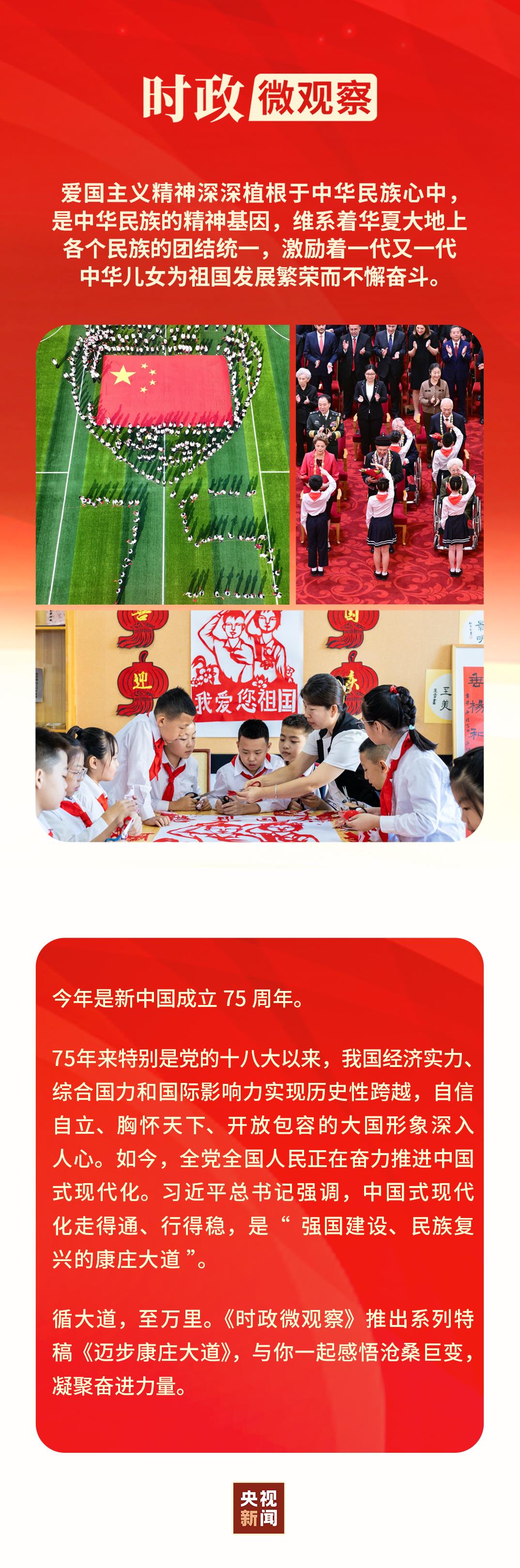 實現中華民族偉(wei) 大複興(xing) 的中國夢,是當代中國愛國主義(yi) 的鮮明主題。新征程上,我們(men) 要凝聚起心中的愛國情、強國誌,勠力同心、開拓進取,共同譜寫(xie) 人民共和國更加絢麗(li) 精彩的新篇章。