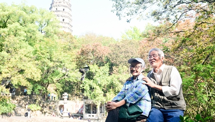 江蘇蘇州,老人們(men) 登虎丘山迎重陽