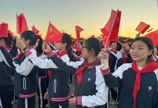 2024年10月1日,天安門廣場舉(ju) 行升國旗儀(yi) 式,慶祝中華人民共和國成立75周年。北京2000名大中小學師生現場觀禮升國旗儀(yi) 式。