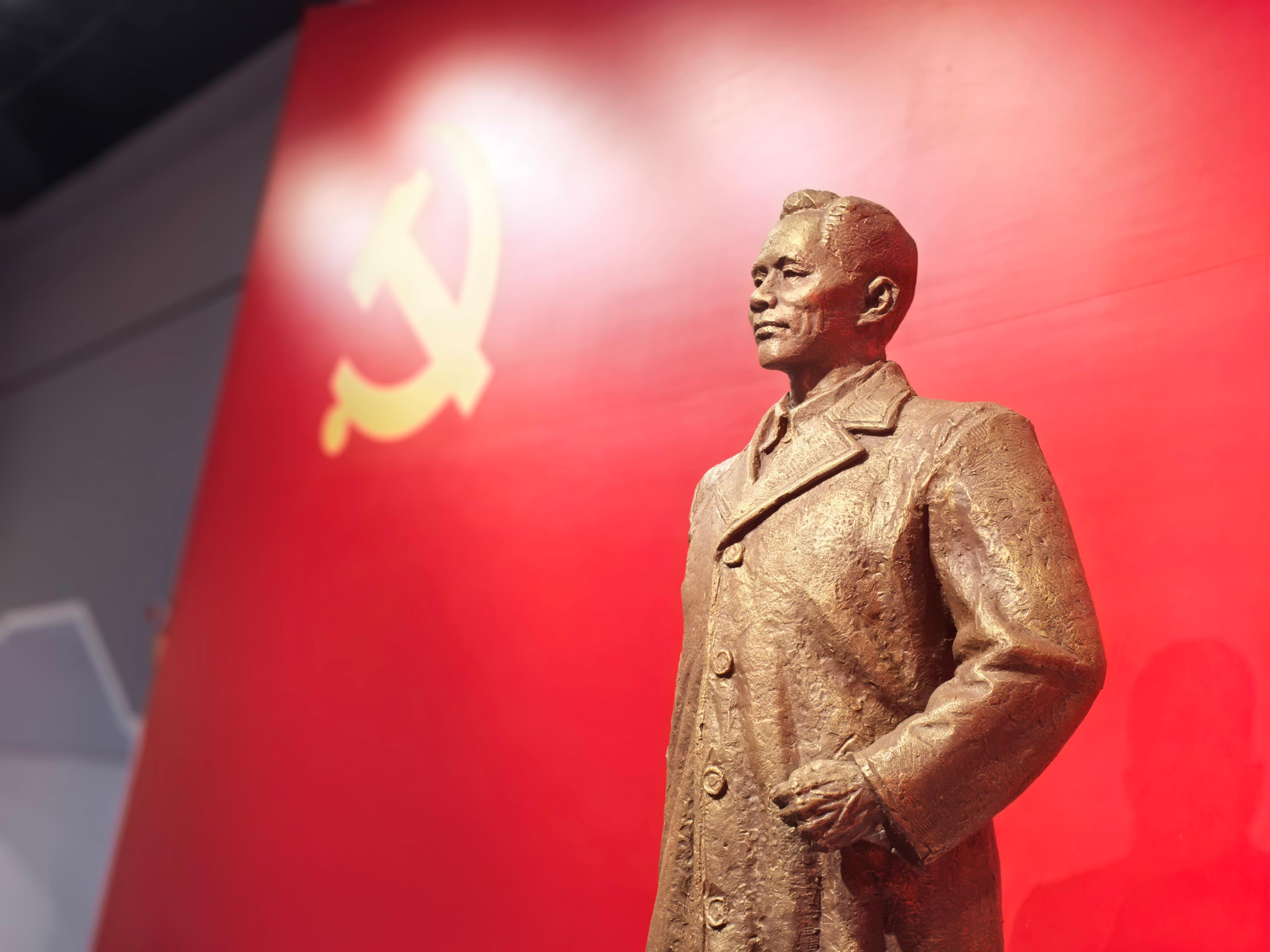 紀念館裏的穀文昌雕像。(總台央廣記者潘毅拍攝)