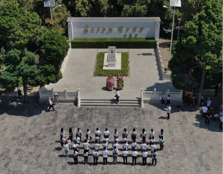 2021年6月24日,參觀者在位於(yu) 河南省蘭(lan) 考縣的焦裕祿紀念園瞻仰焦裕祿烈士墓(無人機照片)。新華社記者 李安 攝