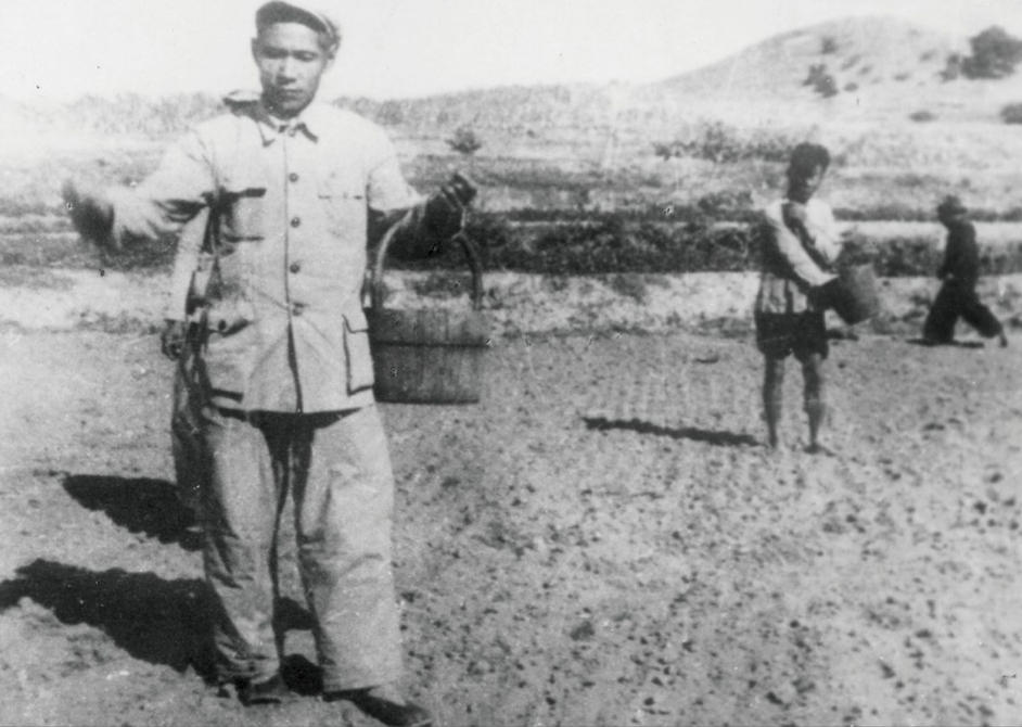 穀文昌在福建省東(dong) 山縣坑北村參加播種。