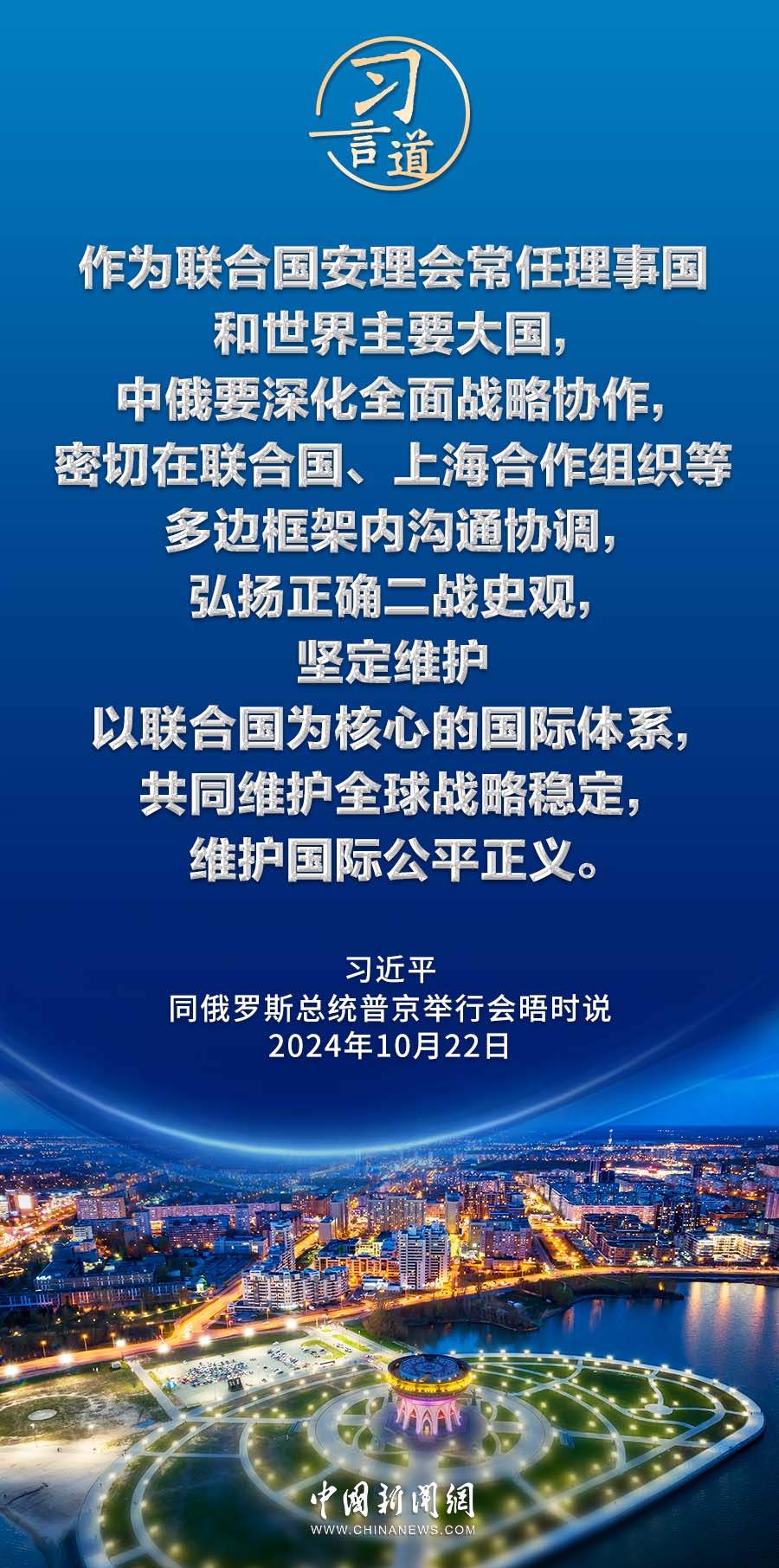 當地時間10月22日下午,國家主席習(xi) 近平在喀山克裏姆林宮同俄羅斯總統普京舉(ju) 行會(hui) 晤。習(xi) 近平指出——