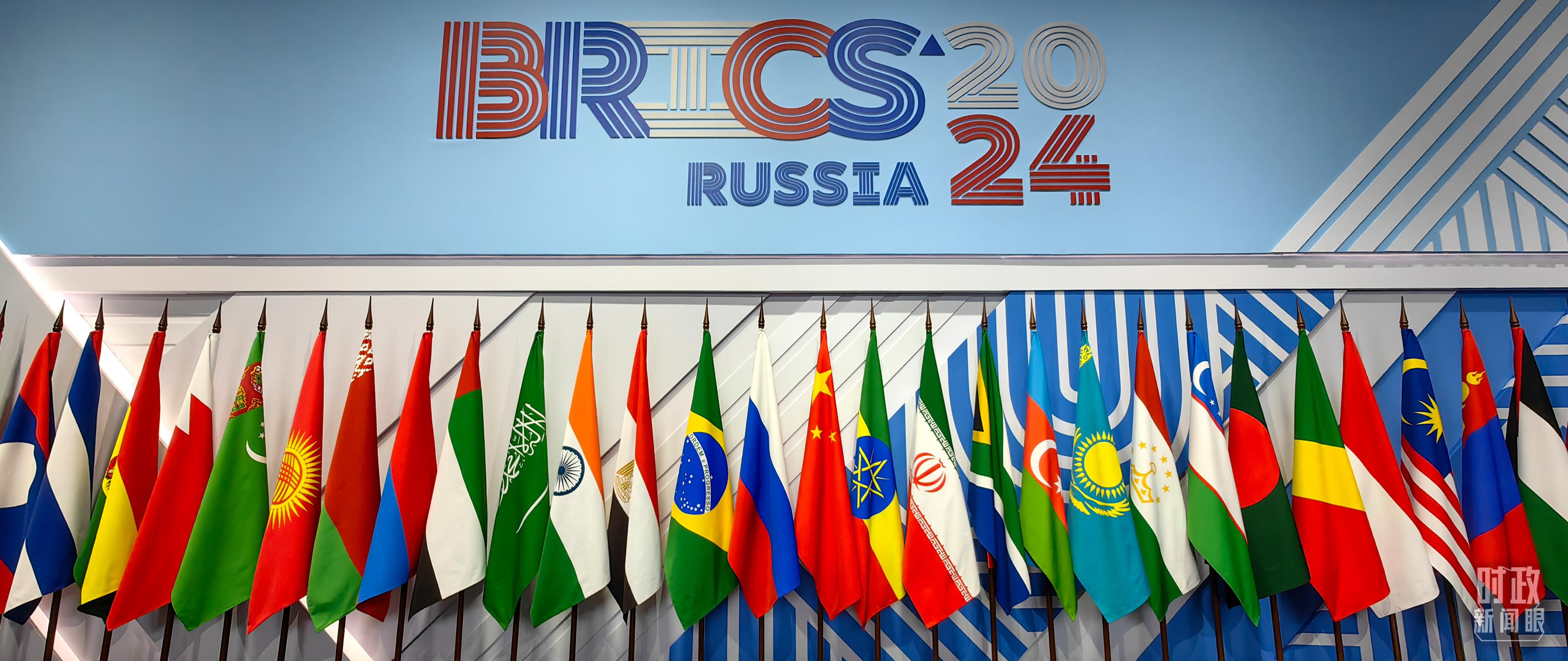 金磚國家領導人大範圍會(hui) 議現場擺放的旗陣。(總台央視記者段德文拍攝)