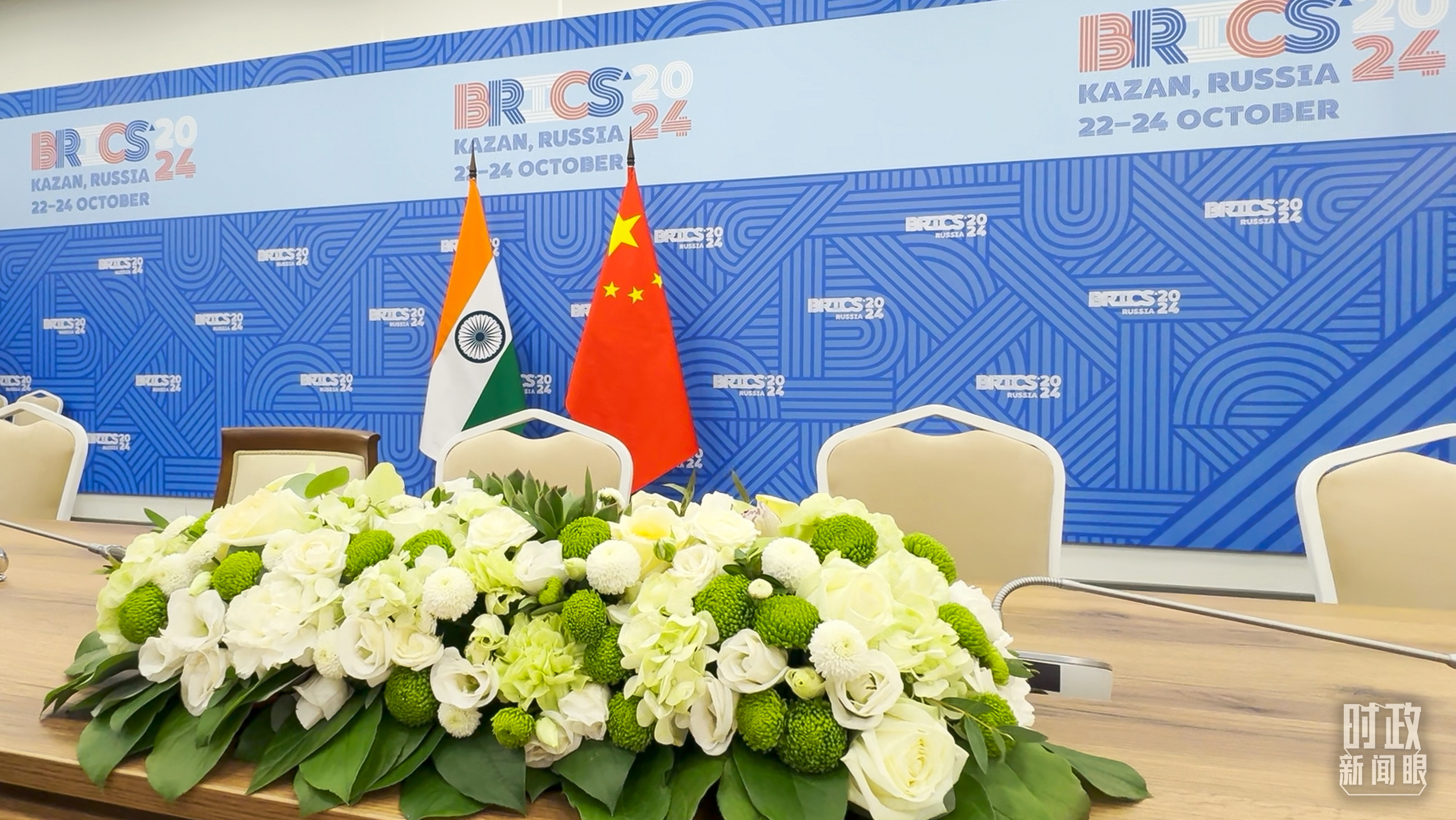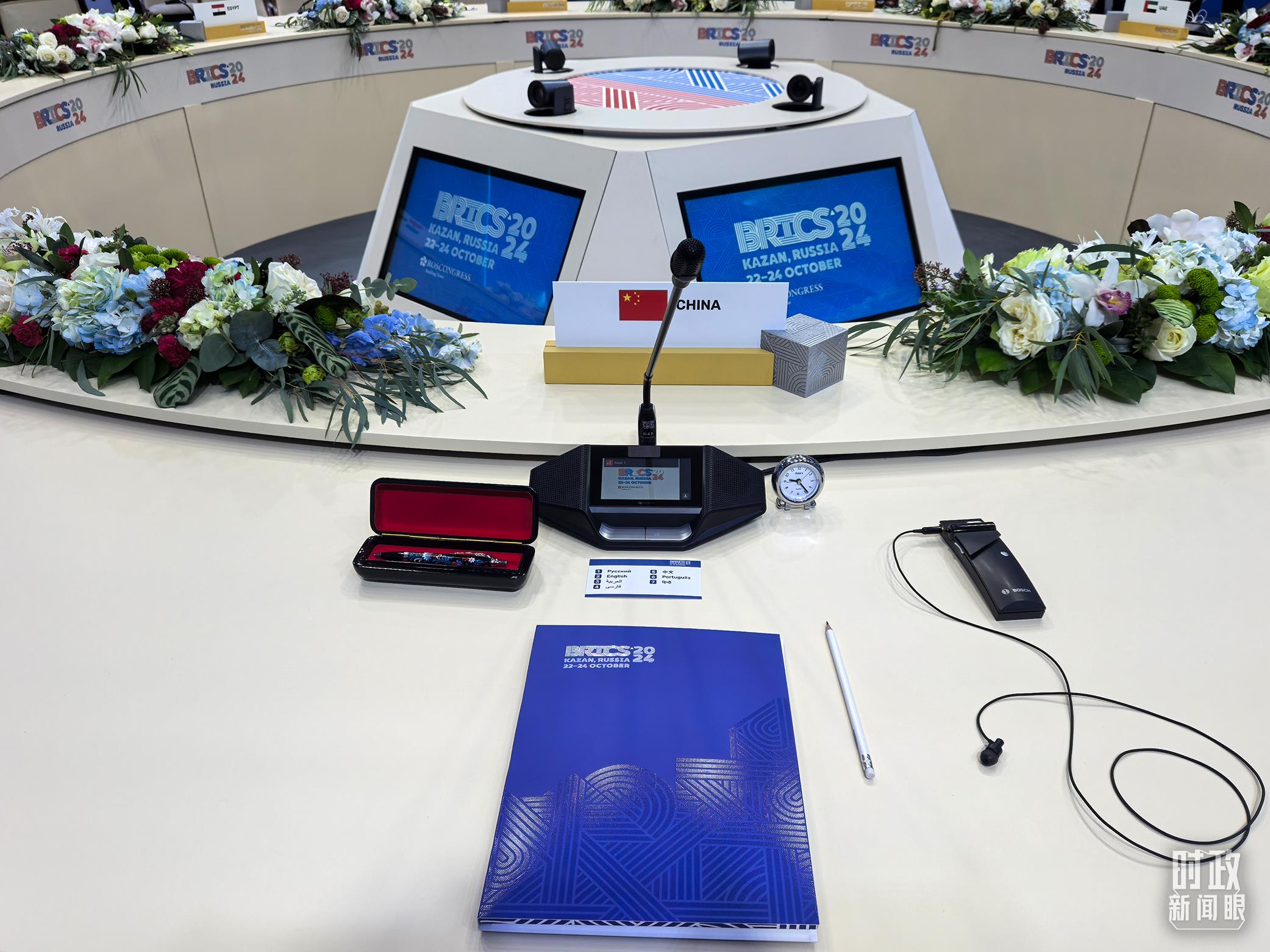 金磚國家領導人小範圍會(hui) 議現場的會(hui) 議桌。(總台央視記者程铖拍攝)