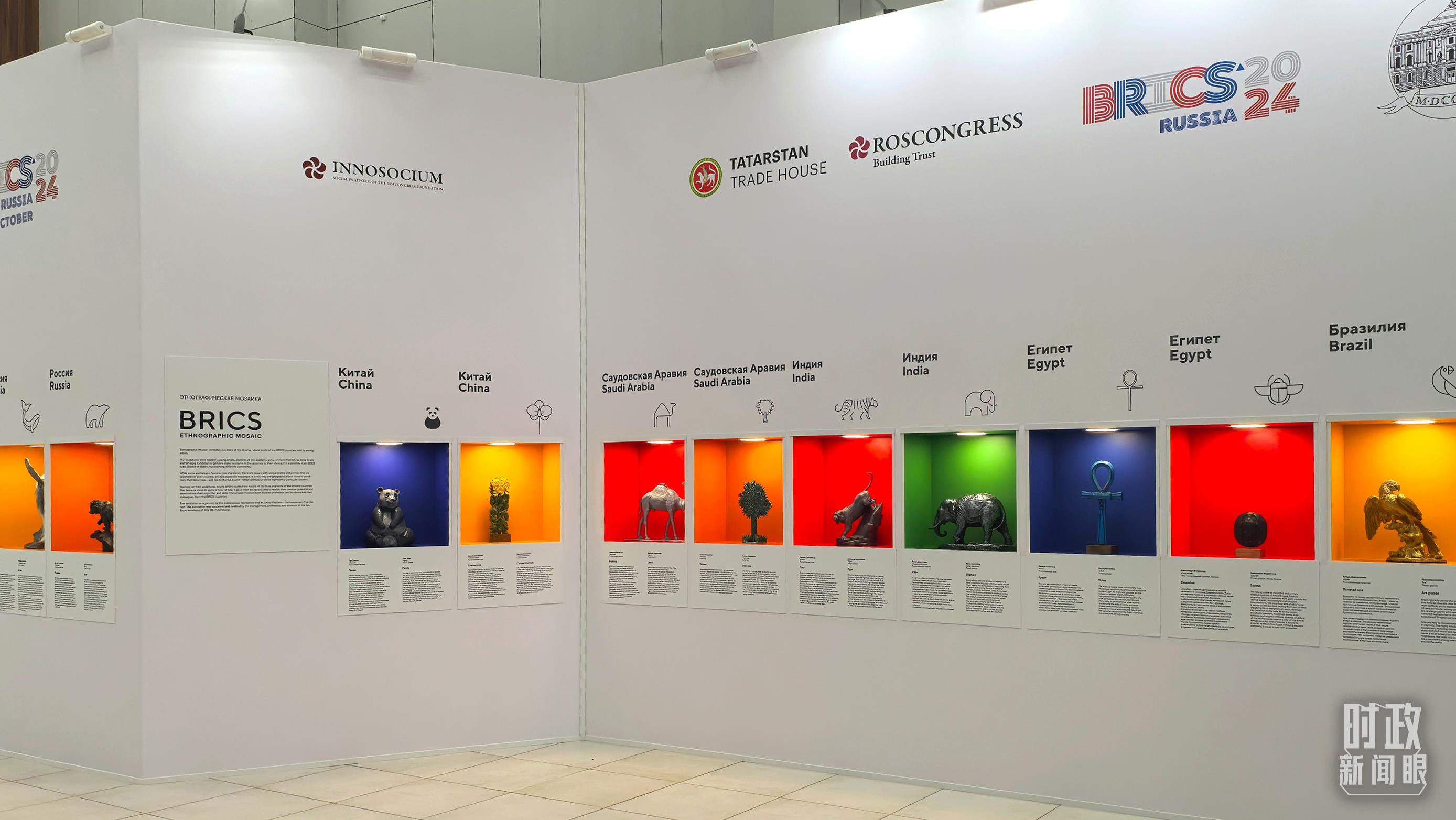 喀山會(hui) 展中心內(nei) 展示的金磚國家工藝品。(總台央廣記者潘毅拍攝)