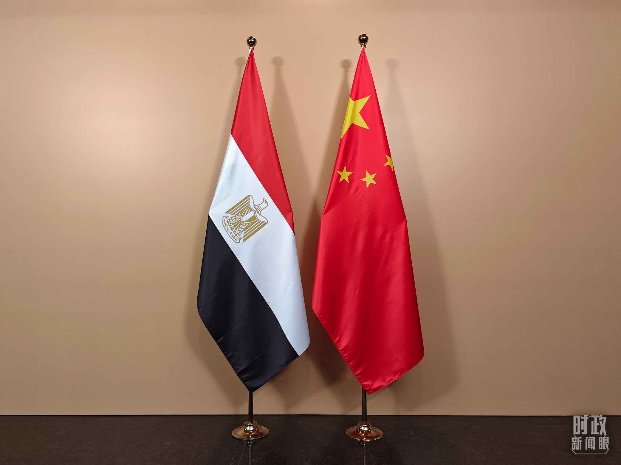 會(hui) 見廳外的中國埃及兩(liang) 國國旗。(總台央視記者彭漢明拍攝)