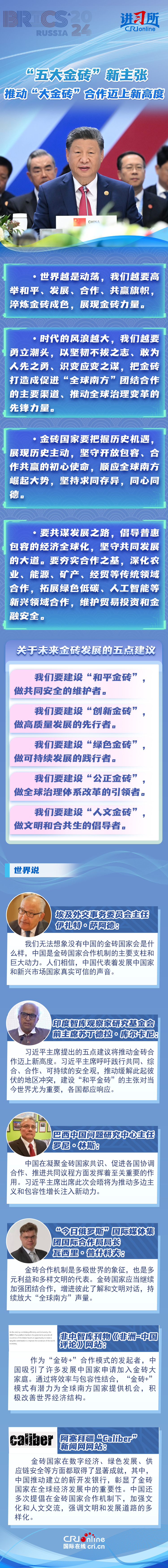 “時代的風浪越大,我們(men) 越要勇立潮頭,以堅韌不拔之誌、敢為(wei) 人先之勇、識變應變之謀,把金磚打造成促進‘全球南方’團結合作的主要渠道、推動全球治理變革的先鋒力量。”當地時間10月23日,習(xi) 近平主席在俄羅斯喀山出席金磚國家領導人第十六次會(hui) 晤並發表重要講話,提出共建“和平金磚”“創新金磚”“綠色金磚”“公正金磚”“人文金磚”,為(wei) “大金磚合作”擘畫藍圖。