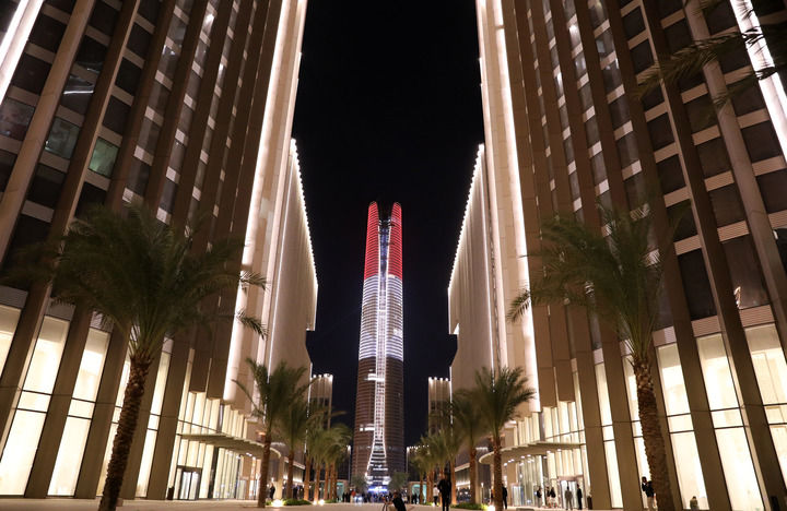 這是2024年10月21日拍攝的埃及新行政首都中央商務區夜景。新華社記者 王東(dong) 震 攝