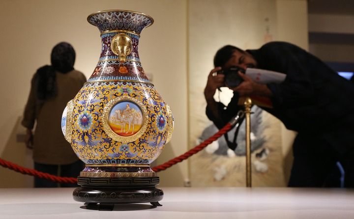 2024年10月12日,在伊朗首都德黑蘭(lan) 的馬利克國家博物館,觀眾(zhong) 在“絲(si) 路長雲(yun) ——中國藝術文化精品展”現場拍攝展品。新華社記者 沙達提 攝