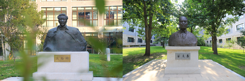 左圖為(wei) 中央黨(dang) 校(國家行政學院)校園內(nei) 的焦裕祿雕塑,右圖為(wei) 校園內(nei) 的穀文昌雕塑。
