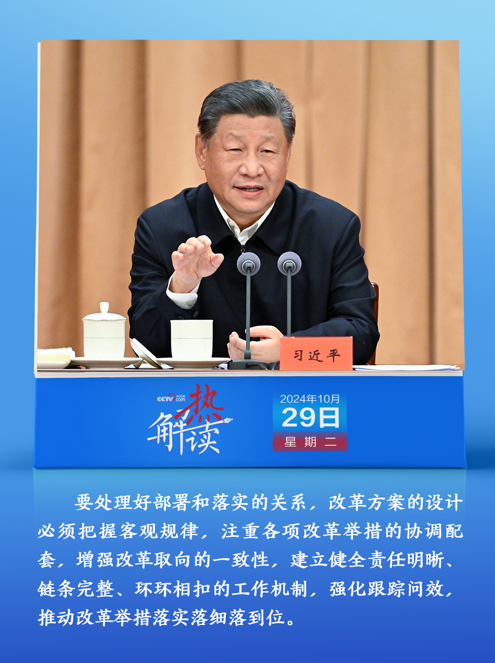 熱解讀10月29日,省部級主要領導幹部學習(xi) 貫徹黨(dang) 的二十屆三中全會(hui) 精神專(zhuan) 題研討班開班。在開班式上,習(xi) 近平總書(shu) 記明確提出要“處理好部署和落實的關(guan) 係”,“建立健全責任明晰、鏈條完整、環環相扣的工作機製,強化跟蹤問效,推動改革舉(ju) 措落實落細落到位”。