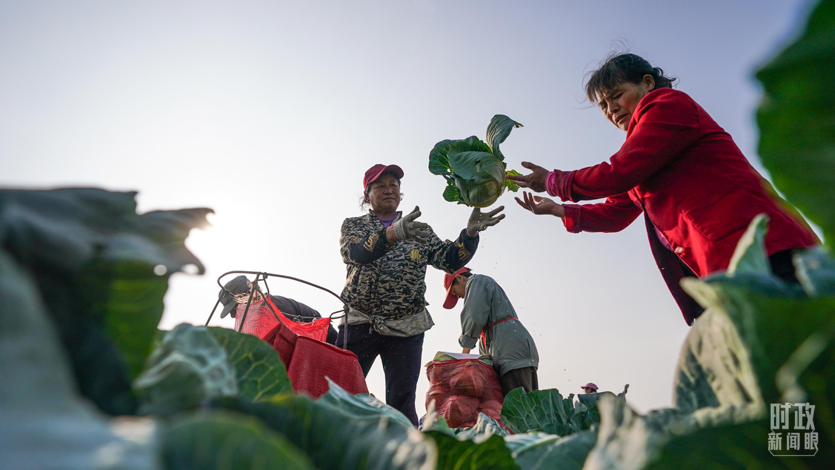 △四邑村村民正在采收蔬菜。(總台記者李晉拍攝)