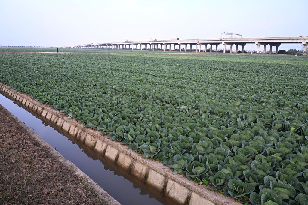 來到嘉魚縣潘家灣鎮的蔬菜種植基地,放眼望去,滿目皆綠。菜農(nong) 們(men) 在忙碌著進行鬆土、除草。連片的包菜、白菜鮮翠欲滴,長勢喜人。