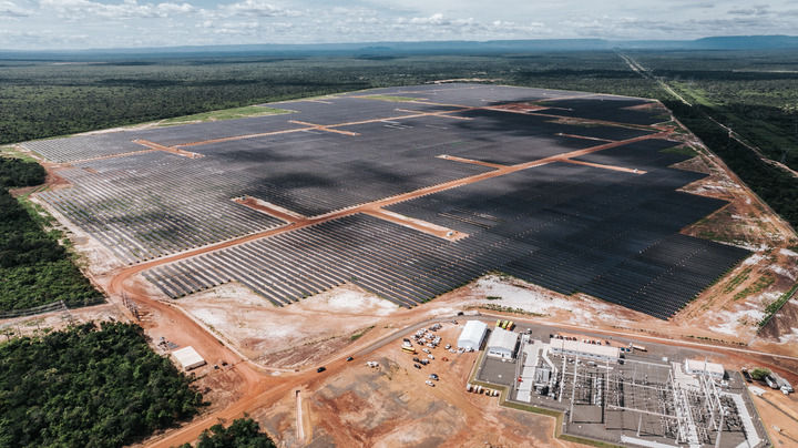 這是2024年6月7日在巴西皮奧伊州拍攝的由中國國家電力投資集團公司(國家電投)巴西公司投資並主導建設的馬蘭(lan) 加圖光伏電站(無人機照片)。