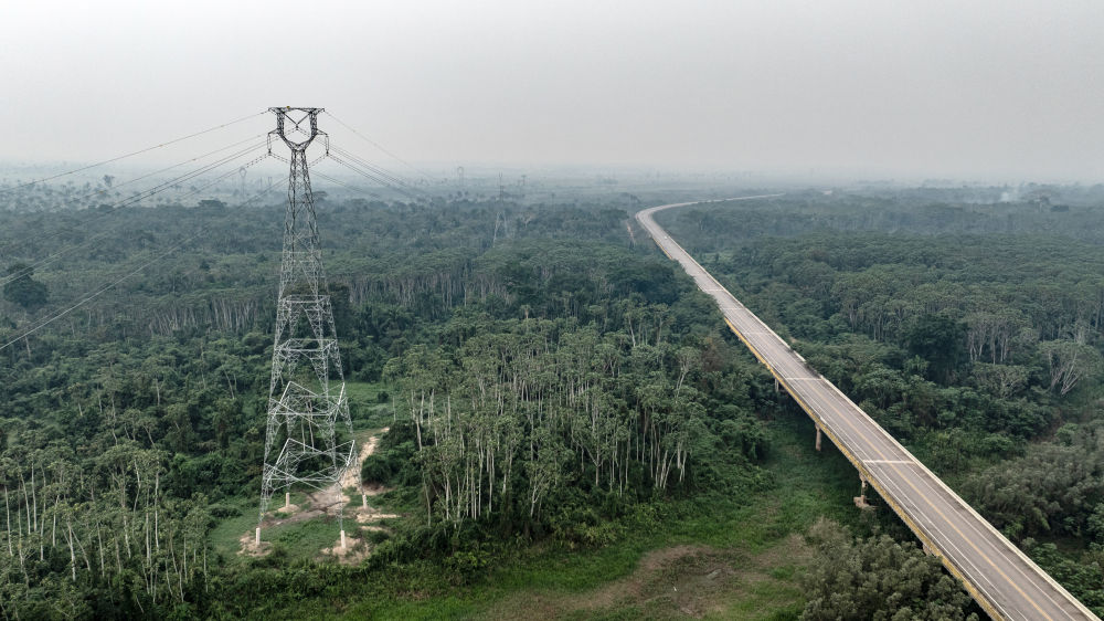 這張9月13日拍攝的照片顯示,在巴西朗多尼亞(ya) 州,EDP輸變電項目線路穿越熱帶雨林(無人機照片)。巴西EDP輸變電項目是位於(yu) 巴西北部的阿克裏州和朗多尼亞(ya) 州的綠地輸變電工程,山東(dong) 電建一公司承擔了該項目的EPC總承包任務。新華社記者王天聰攝