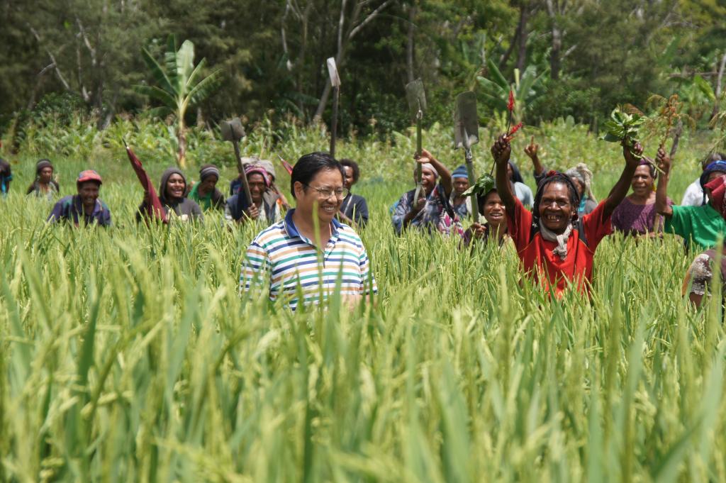 2019年12月17日,首次參與(yu) 中國援巴新旱稻項目的巴布亞(ya) 新幾內(nei) 亞(ya) 農(nong) 戶,看到自己種植的旱稻長勢喜人。