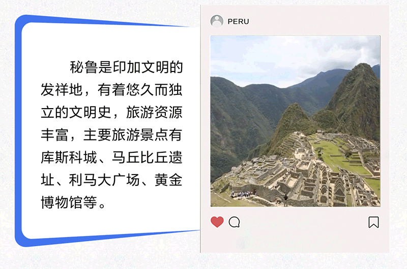 中國和秘魯都是文明古國,兩(liang) 國友誼源遠流長,人民友好深入人心。習(xi) 近平主席曾以“秘魯是中國在太平洋對岸的‘鄰居’”形容中秘關(guan) 係,生動詮釋了兩(liang) 國和兩(liang) 國人民之間“相知無遠近”的深厚友誼。