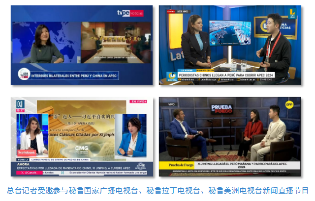 中央廣播電視總台記者受邀參與(yu) 秘魯國家廣播電視台、秘魯拉丁電視台和當地收視率最高的秘魯美洲電視台新聞直播節目,介紹《平“語”近人——習(xi) 近平喜歡的典故》第三季(西班牙語版)內(nei) 容,帶領當地受眾(zhong) 感悟習(xi) 近平主席用典中蘊含的中國智慧。