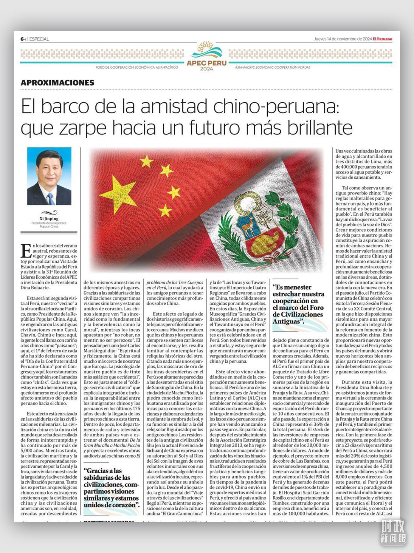 △習(xi) 主席在《秘魯人報》發表題為(wei) 《讓中秘友好之船揚帆遠航》的署名文章。(總台國廣記者吳倩)