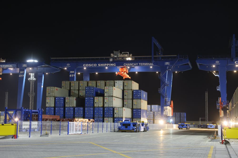 通過大屏幕連線,兩(liang) 國元首共同下達開港指令。利馬以北80公裏的錢凱港,在夜幕中開啟了港口作業(ye) 。