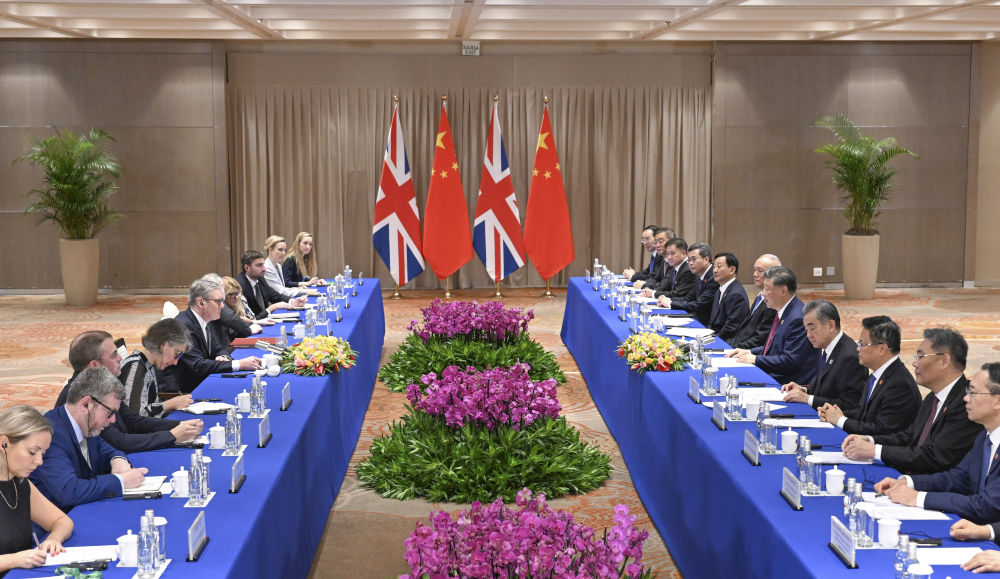 斯塔默表示,英中之間擁有廣泛共同利益,對解決(jue) 全球性挑戰、維護世界和平和發展負有重要責任。英中持久強有力關(guan) 係對於(yu) 兩(liang) 國和世界都非常重要。英方希望秉持相互尊重和平等坦誠的精神,同中方加強對話,增進相互了解,在經貿、科技、財政金融、衛生醫療、教育、應對氣候變化等廣泛領域開展交流合作。英中都堅持多邊主義(yi) ,英方願同中方加強多邊溝通協調,推動政治解決(jue) 地區熱點問題。