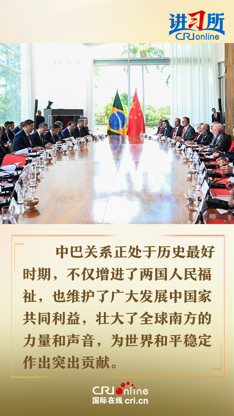 當地時間11月20日,中國國家主席習(xi) 近平在巴西利亞(ya) 總統官邸黎明宮同巴西總統盧拉舉(ju) 行會(hui) 談。兩(liang) 國元首宣布,將中巴關(guan) 係定位提升為(wei) 攜手構建更公正世界和更可持續星球的中巴命運共同體(ti) 。
