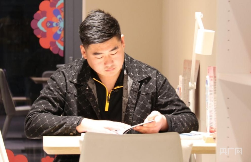 吳濤在共享圖書(shu) 館看書(shu) (央廣網記者 唐奇雲(yun) 攝)