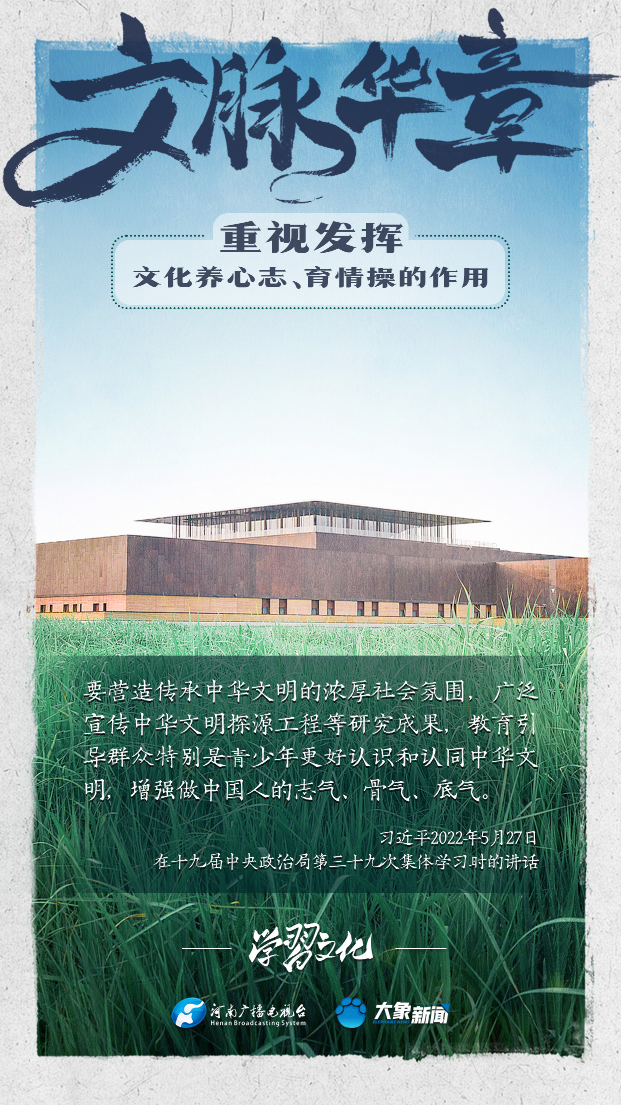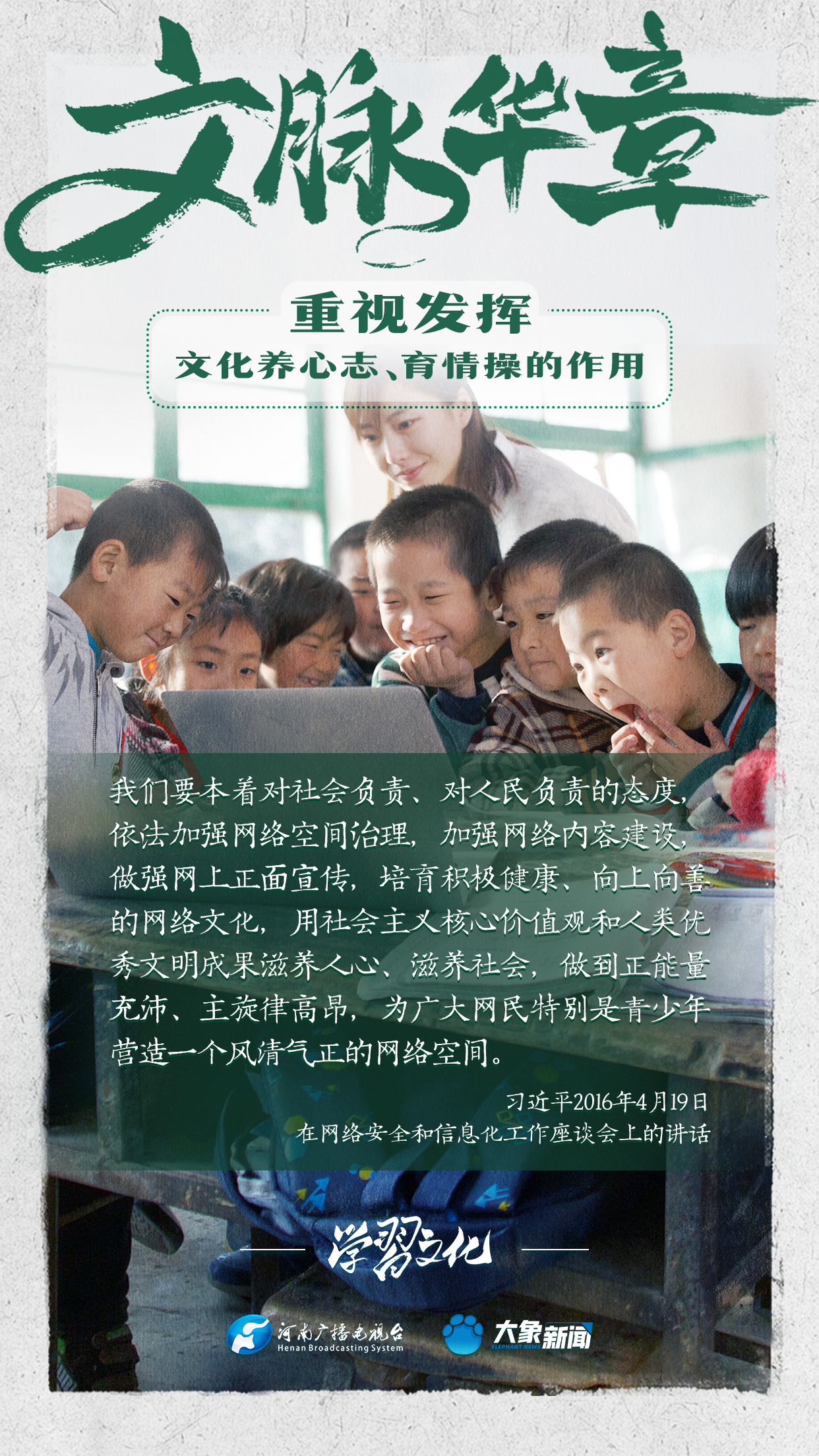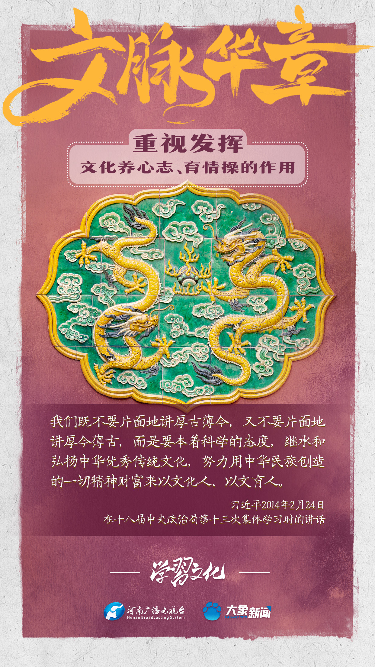習(xi) 近平總書(shu) 記在主持中共中央政治局第十七次集體(ti) 學習(xi) 時強調,重視發揮文化養(yang) 心誌、育情操的作用,涵養(yang) 全民族昂揚奮發的精神氣質。總書(shu) 記高度重視文化的作用,發表了一係列重要講話,倡導以文載道、以文傳(chuan) 聲、以文化人。我們(men) 一起學習(xi) 。