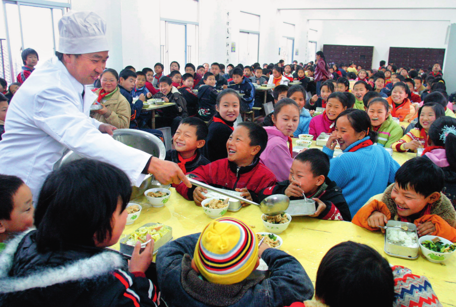 浙江省麗(li) 水市蓮都區雙黃鄉(xiang) 中心小學的學生在吃營養(yang) 餐(資料照片 )項文俊 攝