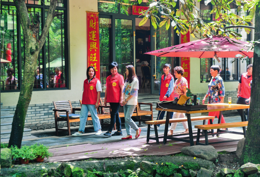 走進白沙村,隻見柏油馬路邊是排列齊整的黃色小洋樓,家家戶戶門口都有綠植點綴,村裏建起健身廣場、籃球場、遊泳池、羽毛球場等大型運動場所。2024年春節,村裏組織第三次拍攝全村福,上千村民齊聚在一起,用鏡頭定格幸福笑容。