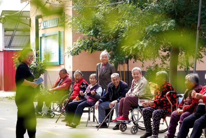 2024年10月8日,在河北巨鹿縣南大韓村菘樂(le) 醫養(yang) 中心,工作人員陪同老人散心。