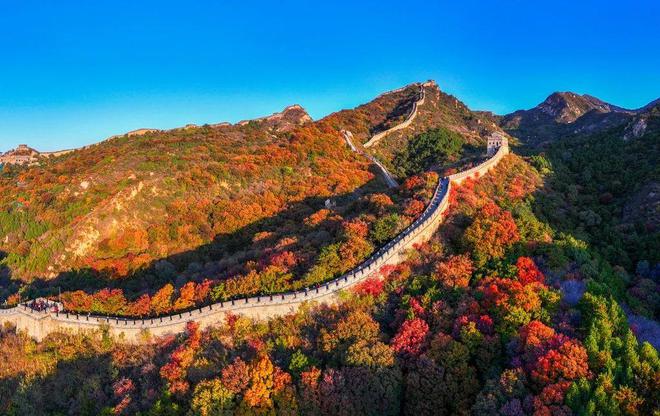 深秋的北京八達嶺長城層林盡染,風景如畫。