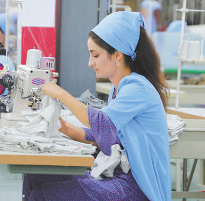 在中企投資的丹加拉農(nong) 業(ye) 紡織產(chan) 業(ye) 園,當地工人正在進行成衣縫紉。本報記者 胡澤曦攝