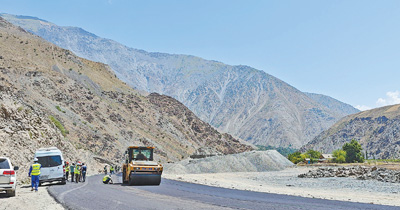 中塔公路二期項目建設現場,兩(liang) 國工作人員正在平整瀝青路麵。本報記者 程是頡攝
