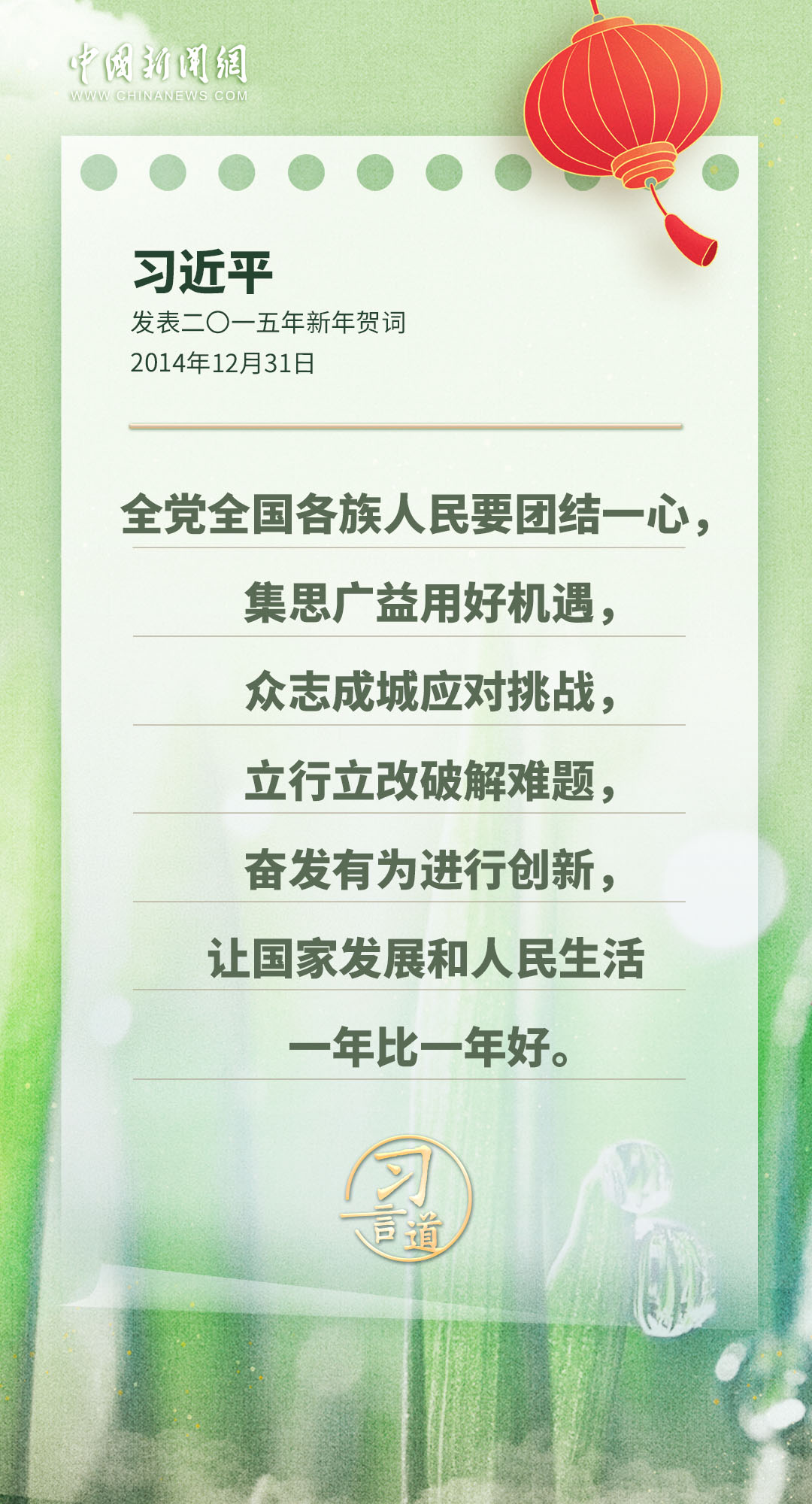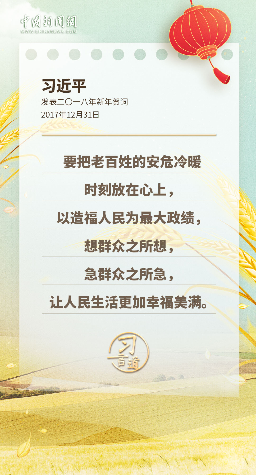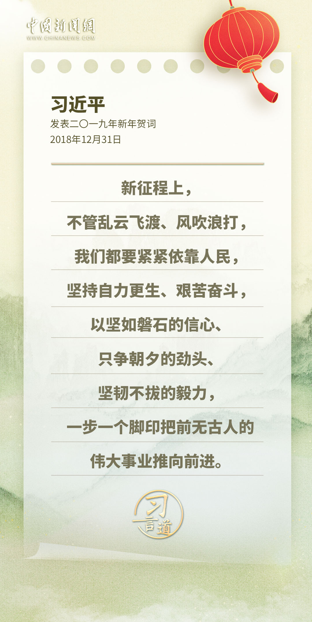 為(wei) 成就喝彩,為(wei) 人民點讚,為(wei) 民生牽掛……習(xi) 近平主席發表的新年賀詞,每一年都鼓舞人心,金句不斷,一起重溫這些暖心提氣的話語——