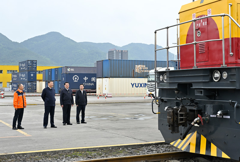 2024年4月22日,習(xi) 近平總書(shu) 記在重慶國際物流樞紐園區重慶鐵路集裝箱中心站考察。