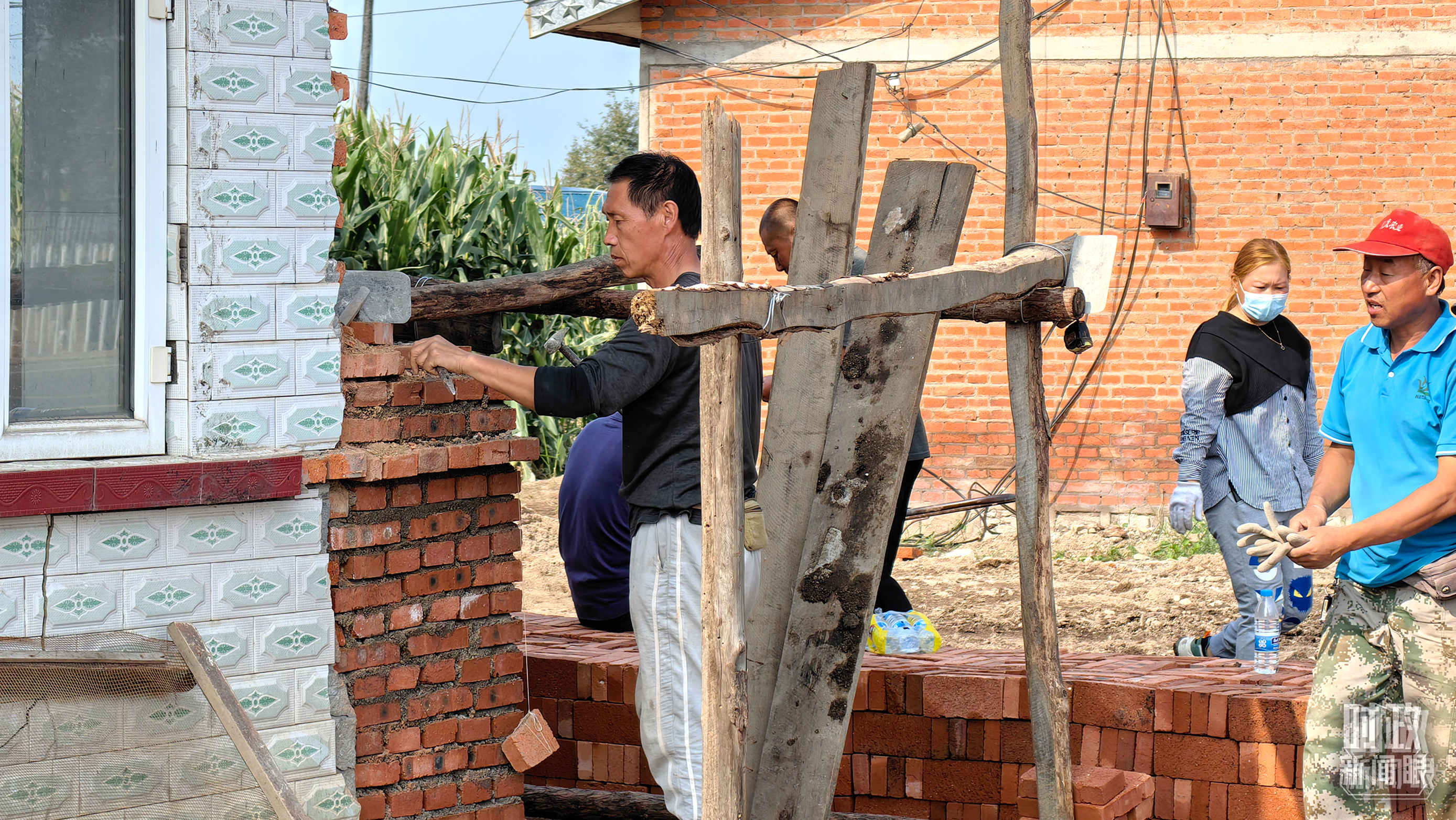 2023年9月,黑龍江龍王廟村村民在修繕在洪水中受損的房屋。(總台央廣記者潘毅拍攝)