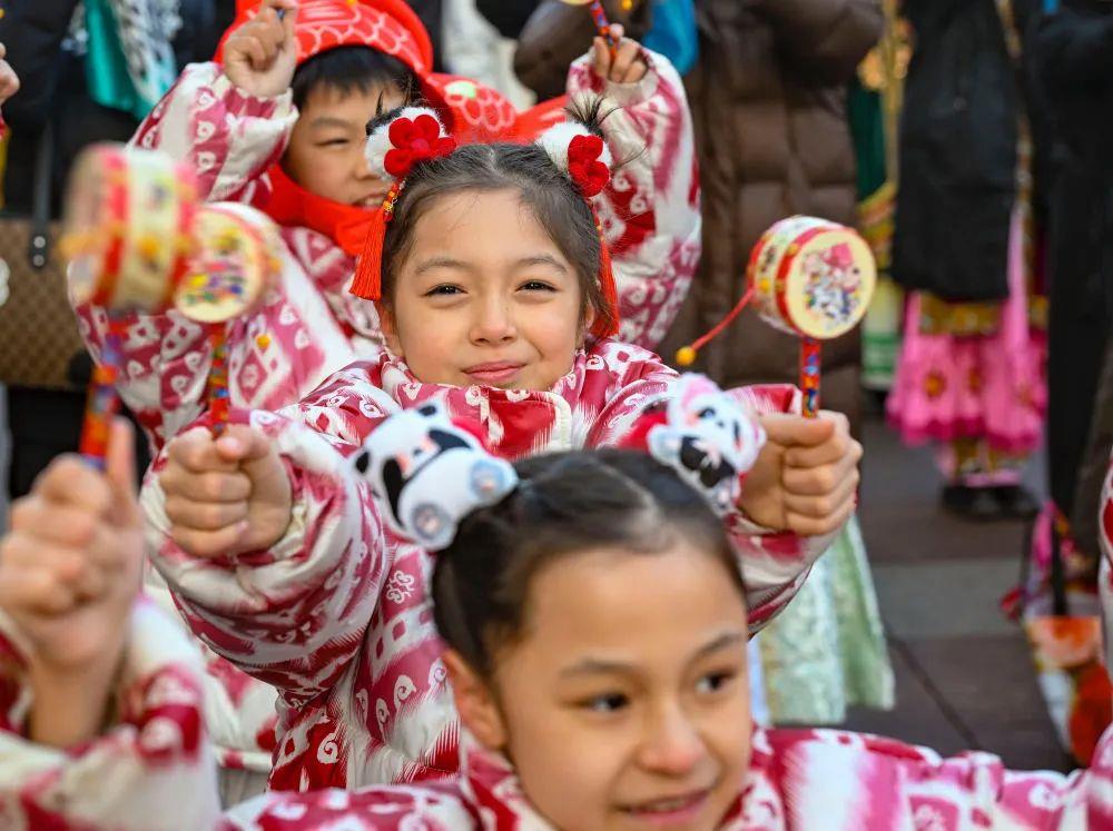新疆大巴紮社火迎新春,孩子們(men) 在現場表演。