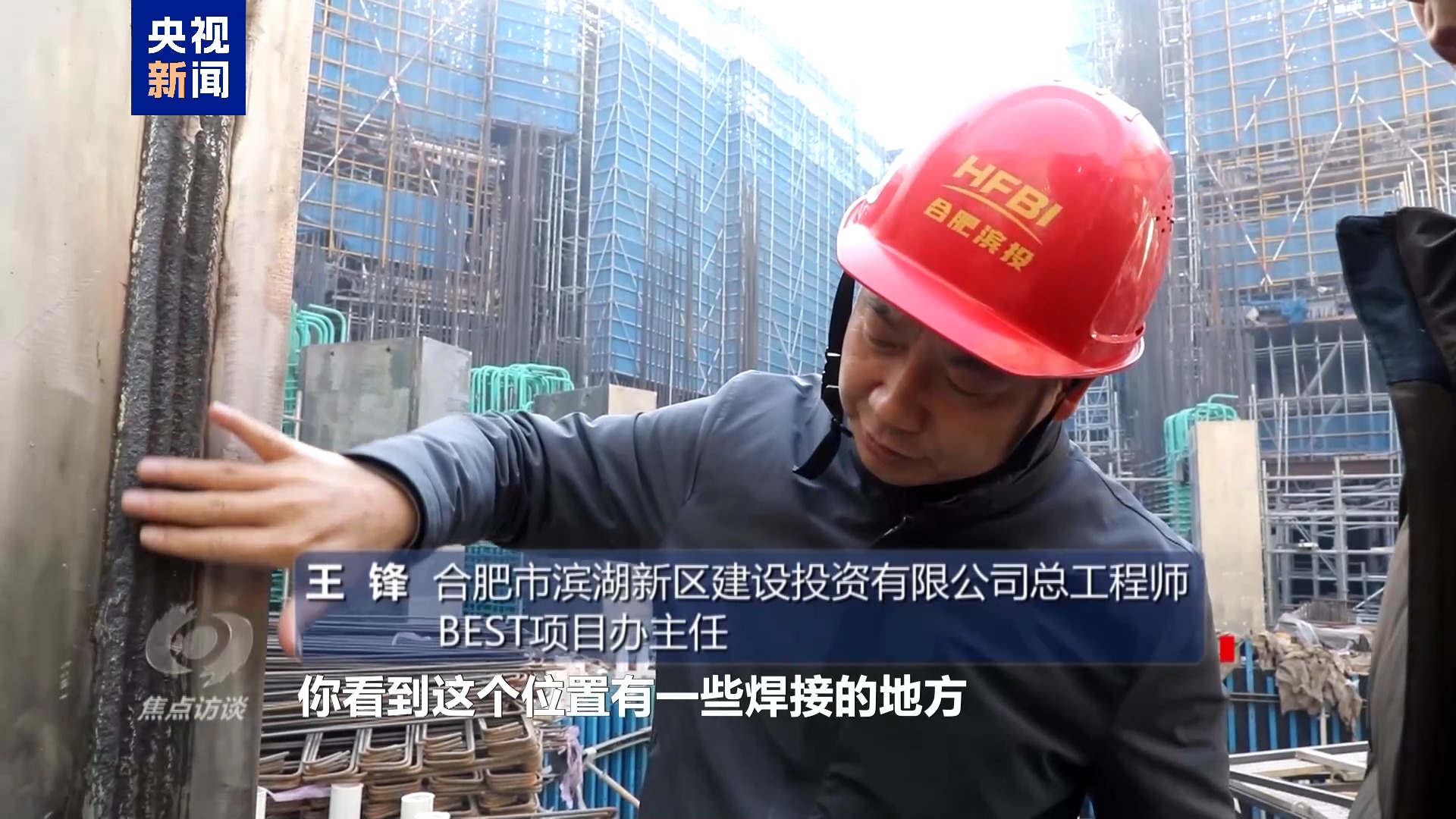 合肥市濱湖新區建設投資有限公司總工程師 BEST項目辦主任 王鋒:你看這個(ge) 位置有一些焊接的地方,是在加工廠裏麵二次焊接的時候出現了問題。焊接的點位的磁導率不過關(guan) ,這個(ge) 科學問題解決(jue) 不了,整個(ge) 工程就要停工,所做的所有的東(dong) 西就是圍繞這個(ge) 來幹的。