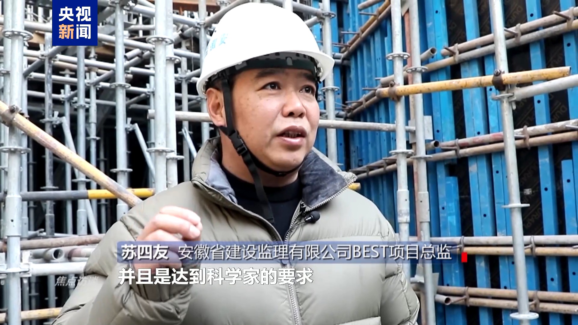 安徽省建設監理有限公司BEST項目總監 蘇四友:到目前為(wei) 止,整個(ge) 進度略有超前,質量是完全可控的,完全在規範範圍之內(nei) 並且是達到科學家的要求。剛才講的無磁鋼柱,我們(men) 進行複測都是一次性合格。