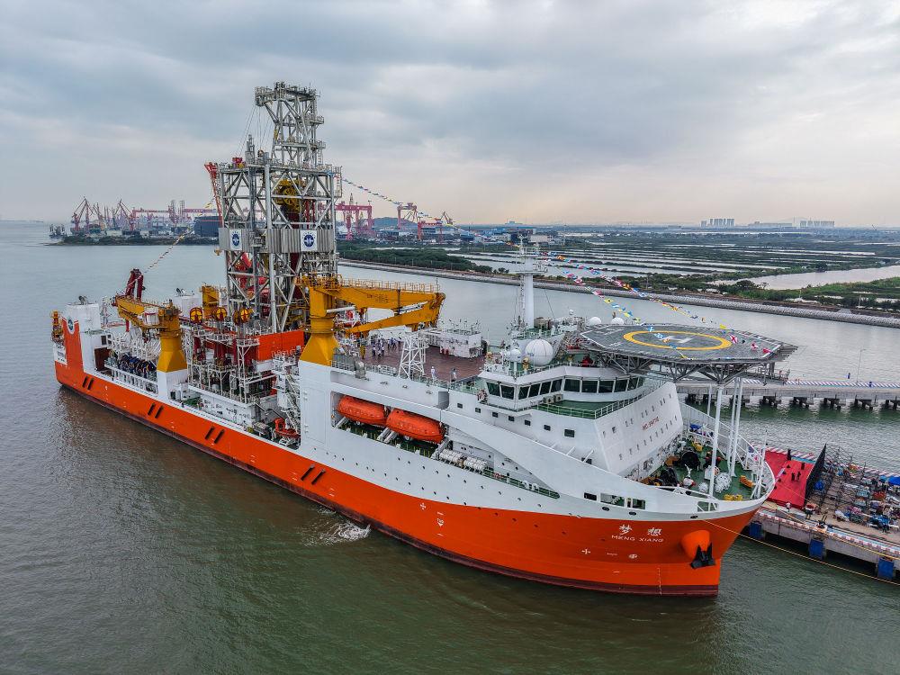△2024年11月17日,靠泊在廣州海洋地質調查局科考碼頭的我國自主設計建造的首艘大洋鑽探船夢想號。