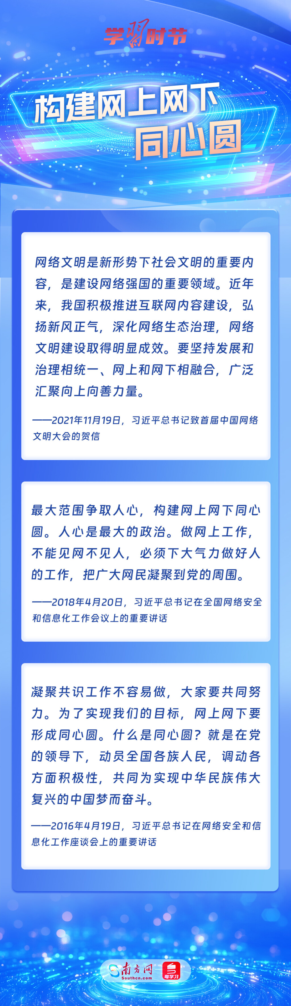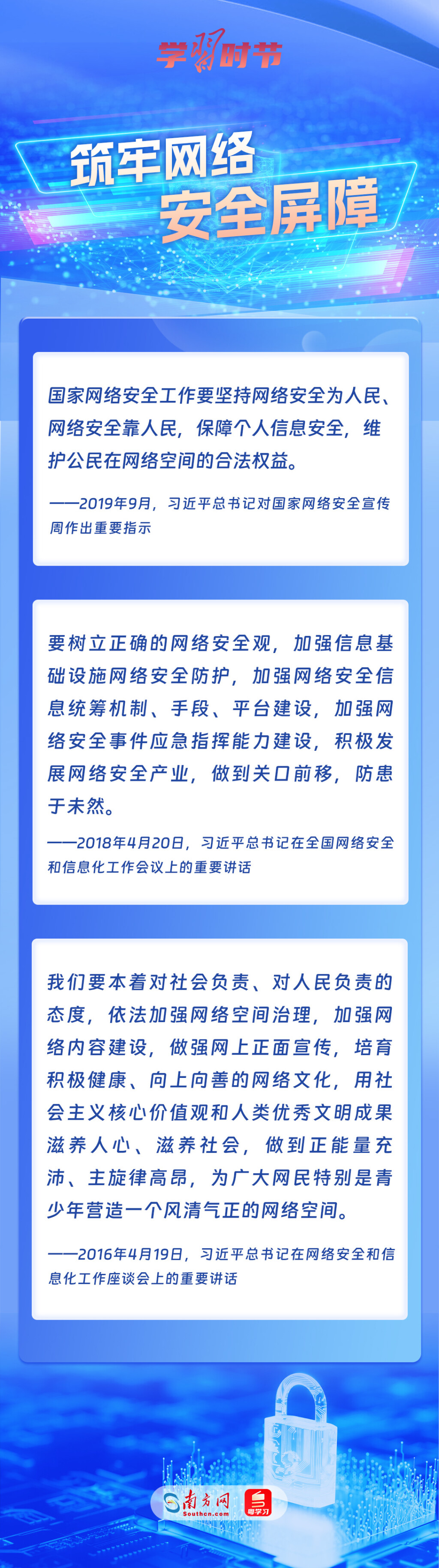 黨(dang) 的十八大以來,習(xi) 近平總書(shu) 記從(cong) 信息化發展大勢和國內(nei) 國際大局出發,就網絡安全和信息化工作提出一係列具有開創性意義(yi) 的新理念新思想新戰略,形成了習(xi) 近平總書(shu) 記關(guan) 於(yu) 網絡強國的重要思想。其中,有不少生動形象的表述,深入人心,發人深省,讓我們(men) 一起學習(xi) 。