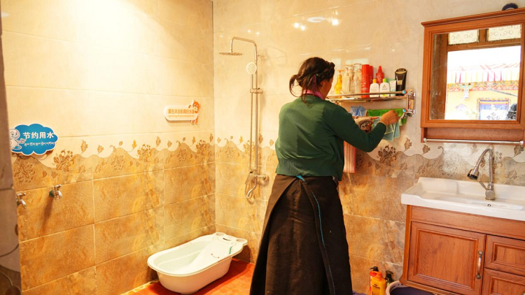 “我們(men) 家小孩多,經常帶去外麵洗澡太不方便,加上現在都很注重個(ge) 人衛生,所以去年我們(men) 決(jue) 定騰一間屋子出來打造浴室。”米普說。