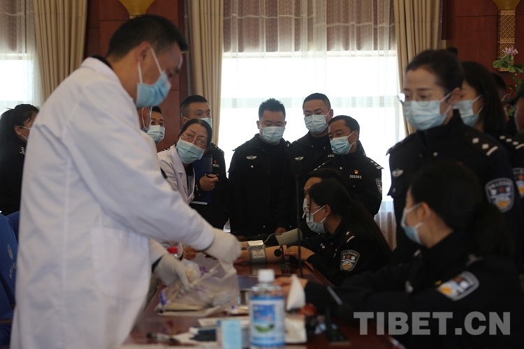 圖為(wei) 醫生為(wei) 拉薩邊檢站民警體(ti) 檢 攝影:王佳豪