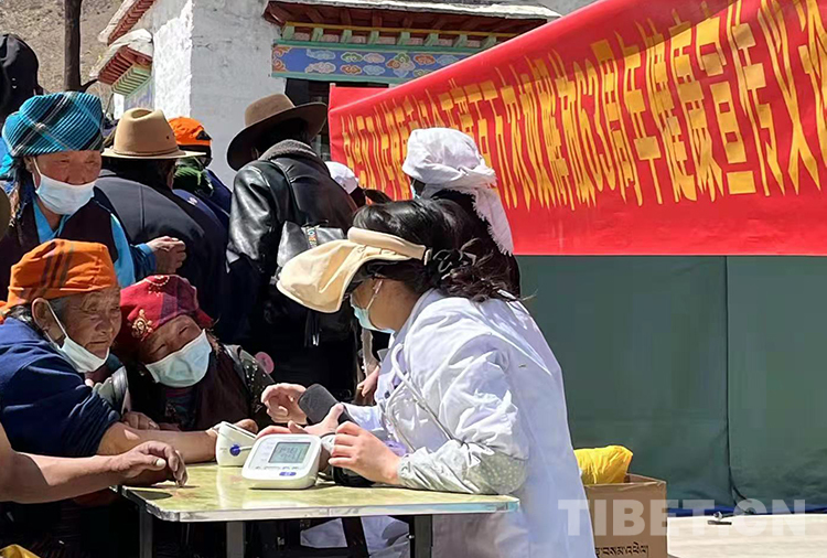 圖為(wei) 西藏自治區4家自治區級醫院專(zhuan) 家在拉薩市林周縣強嘎鄉(xiang) 為(wei) 當地群眾(zhong) 義(yi) 診