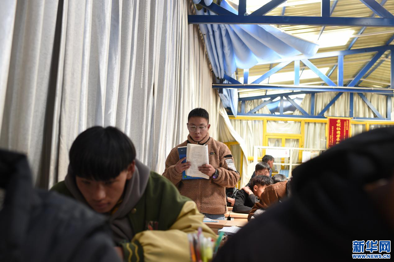 在西藏阿裏岡(gang) 底斯藏醫教學院,一名學生在朗讀課文(4月20日攝)。新華網 旦增努布攝