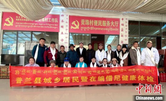 圖為(wei) 醫護人員與(yu) 基層村幹部合影。 普蘭(lan) 縣人民醫院供圖