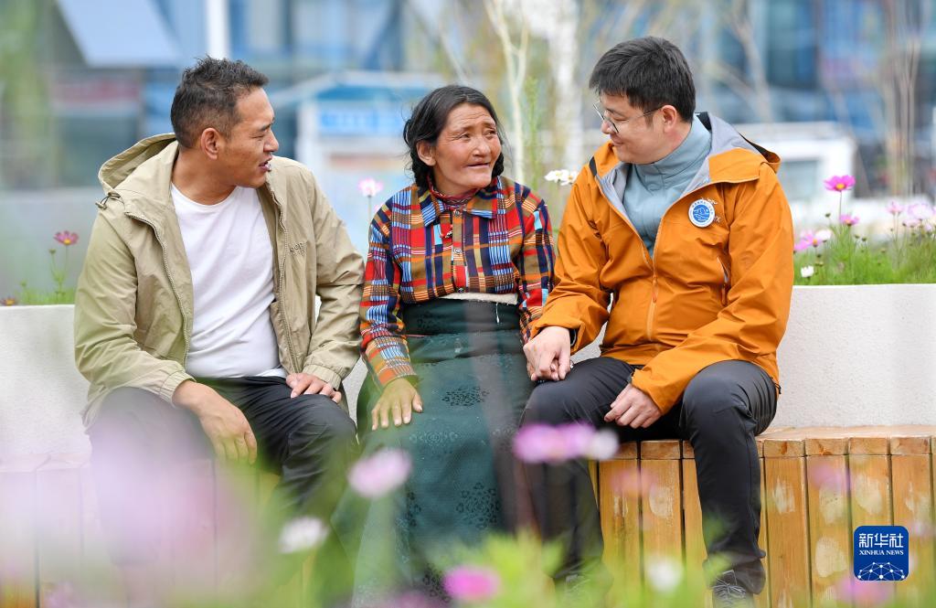 7月31日,在阿裏地區人民醫院,中國醫學科學院整形外科醫院醫生王克明(右)和西藏自治區人民醫院醫生旦增念紮(左)和即將做手術的牧民巴吉聊天。新華社記者 張汝鋒 攝