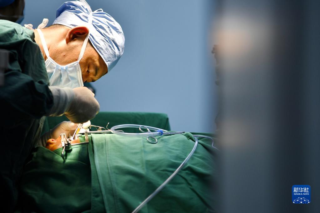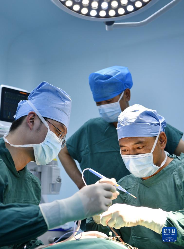7月31日,在阿裏地區人民醫院手術室,西藏自治區人民醫院醫生旦增念紮為(wei) 唇齶裂患者做手術。新華社記者 張汝鋒 攝